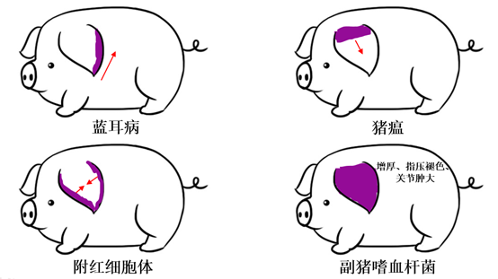 在臨床上,很多養(yǎng)殖戶當(dāng)看到豬耳朵有發(fā)紫表現(xiàn),第一反應(yīng)就想豬只得了藍(lán)耳病,心里恐慌,然后就采取緊急免疫藍(lán)耳疫苗等措施;未考慮到還有其他常見(jiàn)幾種疾?。ㄈ纾贺i瘟、附紅細(xì)胞體感染、副豬嗜血桿菌感染等)也會(huì)導(dǎo)致豬只耳朵發(fā)紫的臨床癥狀。