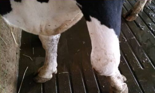 不同病原引起的關(guān)節(jié)炎疾病,臨床癥狀略有不同。典型癥狀:關(guān)節(jié)腫大、變形,牛站立時(shí),患肢屈曲,不能負(fù)重,蹄懸空或以蹄尖著地;運(yùn)動(dòng)時(shí)出現(xiàn)跛行,嚴(yán)重時(shí)犢牛起臥困難。