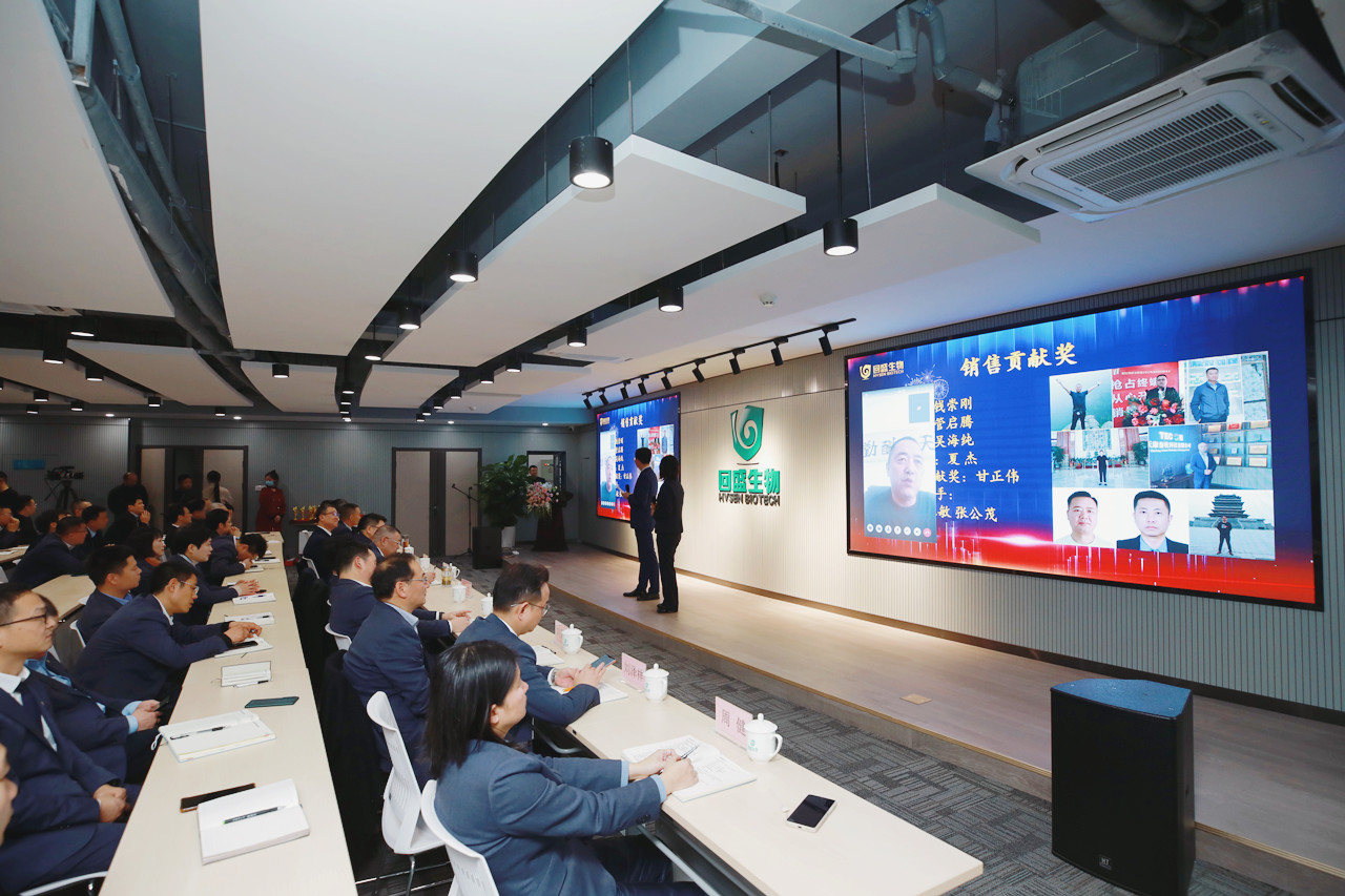 2022年1月21日下午,回盛生物2021年度工作總結(jié)暨表彰大會在新溝智能化工廠學術(shù)報告廳隆重召開,表彰先進樹楷模,凝聚共識促發(fā)展。公司董事長張衛(wèi)元、首席顧問李名家、回盛公益大使李景中;回盛生物首席科學家、華農(nóng)-回盛研究院院長周銳教授、外聘專家李自力、宋云峰等6位教授;回盛生物高管團隊、各中心(部門)負責人以及各部門員工代表出席大會。根據(jù)疫情防控要求,表彰總結(jié)大會首次采用現(xiàn)場會議與線上直播相結(jié)合的形式舉辦,各子公司員工通過線上形式觀看了全場直播。