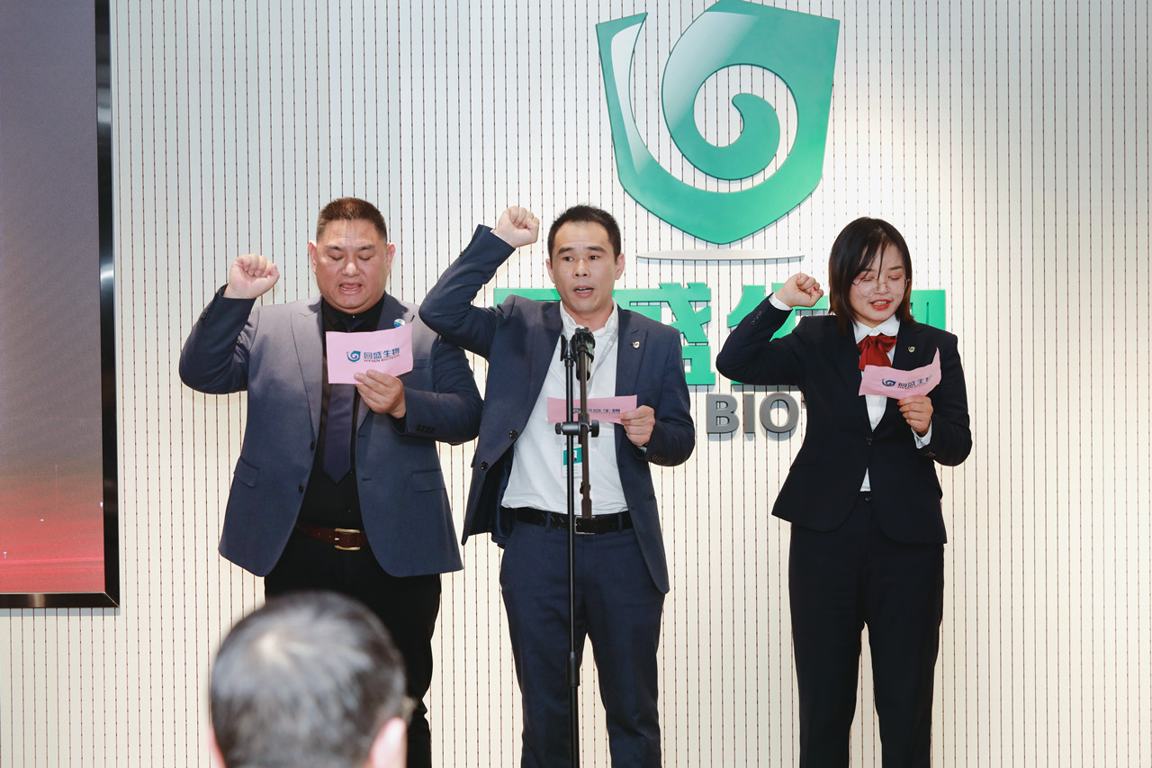 大會最后,全體參會人員以及在各地觀看直播的回盛人起立齊唱回盛生物司歌《擁抱輝煌》,“為了心中共同的目標,在動保天地騰飛領(lǐng)跑,創(chuàng)一流品牌,創(chuàng)一流質(zhì)?!?,在高亢嘹亮的回盛司歌音樂中,在主持人美好的祝愿聲中,回盛生物2021年度工作總結(jié)暨表彰大會圓滿落幕。