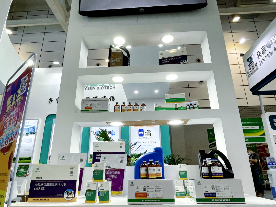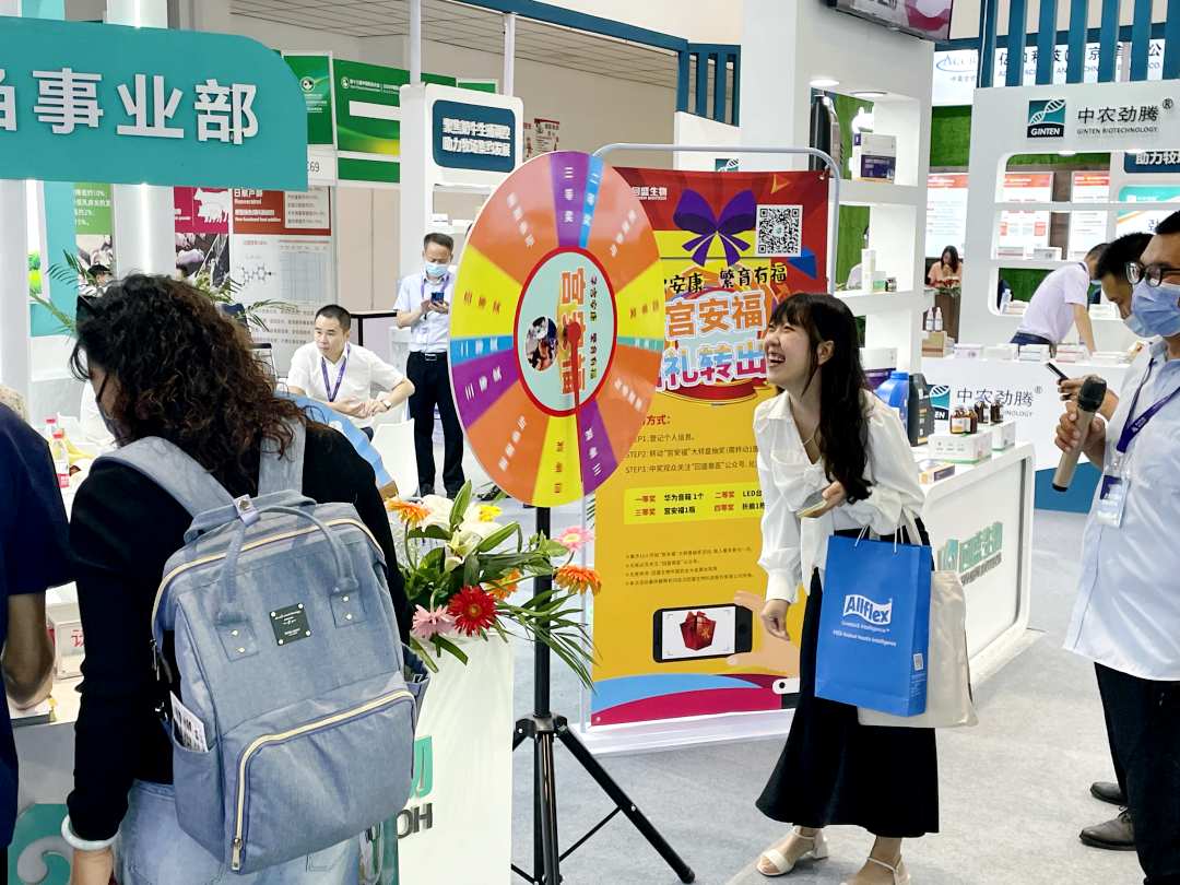 一直以來,回盛生物反芻產(chǎn)品在國內(nèi)市場擁有穩(wěn)定的用戶群體以及良好的口碑。本次展會,回盛生物攜自主研發(fā)的宮安福、泰地羅新、“樂統(tǒng)”套裝、優(yōu)綠環(huán)凈、濃碘酊等產(chǎn)品亮相展會,持續(xù)深耕反芻動物健康領(lǐng)域?;厥⒈姸喈a(chǎn)品在展臺亮相后,引發(fā)了行業(yè)同仁與現(xiàn)場媒體的關(guān)注。