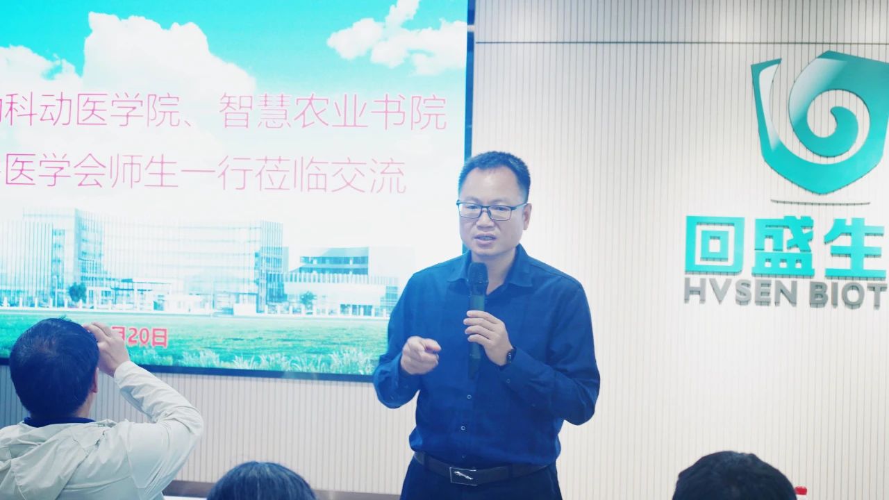 4月20日上午,華中農(nóng)業(yè)大學動物科技學院、動物醫(yī)學院黨委書記劉興斌、副院長李家奎,校工會副主席劉秋紅攜動科動醫(yī)學院23級本科生、智慧農(nóng)業(yè)書院師生,省畜牧獸醫(yī)學會專家一行80余人,蒞臨回盛生物進行參觀和交流。