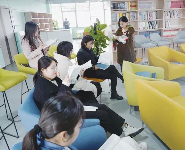 回盛智能化工廠圖書室里,一首首輕快明朗的旋律與書本相約,喚醒了大家對文字的記憶,重新發(fā)現(xiàn)字里行間的雋永之美。書架前,書友們輕撫各色各樣散發(fā)著油墨香氣的書籍,暢游辭海,細(xì)品讀書的滋味。